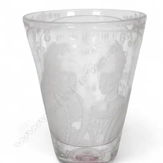A quality 18thC Austrian engraved double portrait drinking glass,
