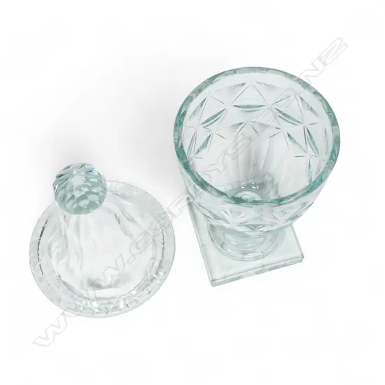 faceted and diamond bands, faceted knob finial, on square star decorated base. H.355mm.