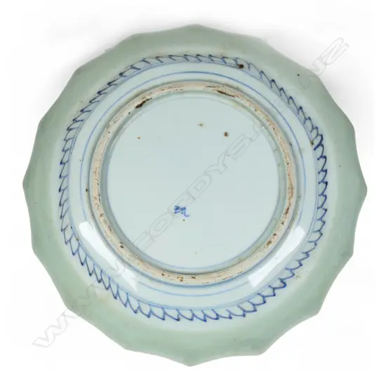 striking painted fish (John Dory) pattern, with celadon glazed scalloped rim. 260 x 260mm