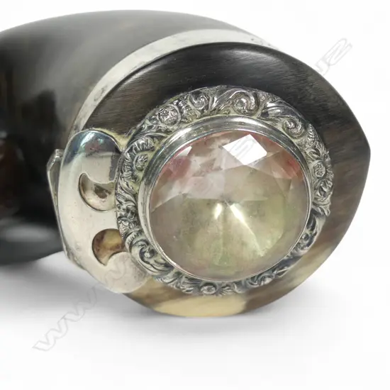 the pinned silver mounts with large facetted cairngorm to the hinged lid, engraved 'John McLean 1863'.