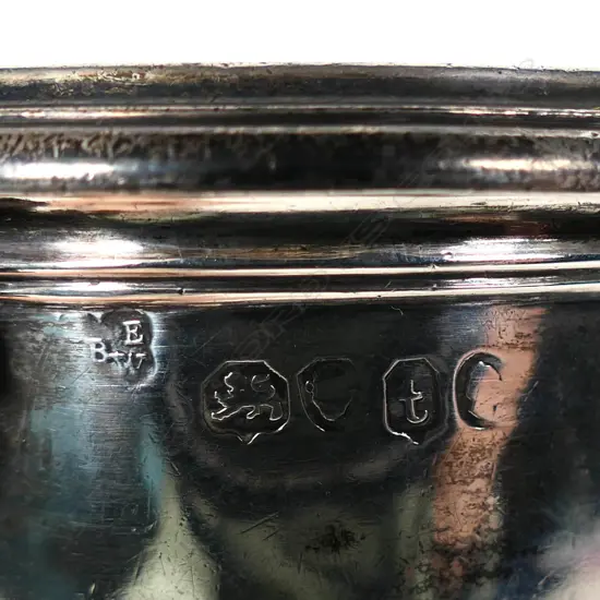 with removable pierced liner and shell clip. Of good weight, some denting and part spout tip absent. 161gm. London 1834 by Edward, Edward junior, John & William Barnard.