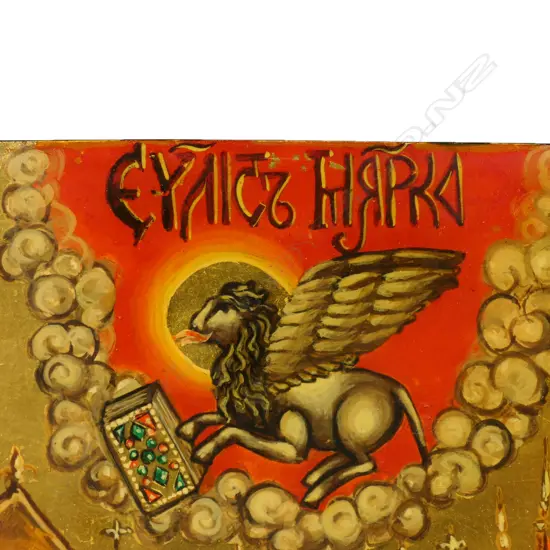 acrylic on panel, 305 x 230mm. Provenance: From the estate of Carolyn McCondach MBE, Auckland. Noted for her fine detailed religious iconography.