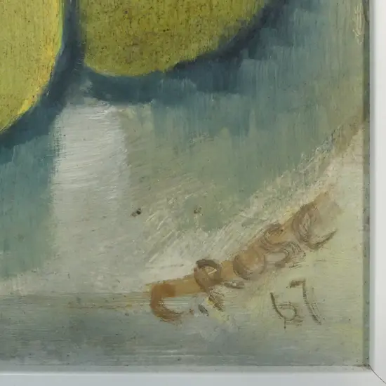 oil on Masonite, signed and dated '67, info verso. 550 x 450mm.