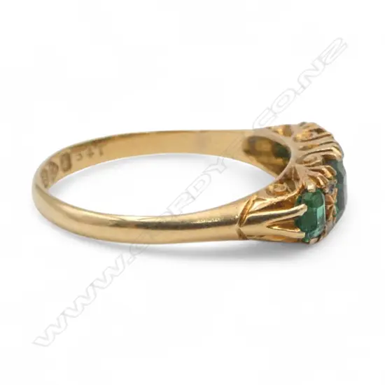 An Edwardian 18ct yellow gold emerald and diamond bridge ring,