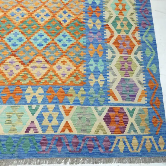 A hand-woven kilim carpet,