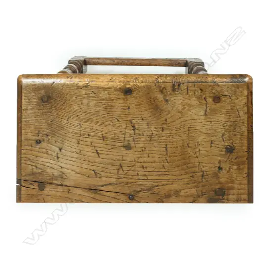pegged construction, turned legs, stretcher base, nice patina. 450 x 250 x 470mm.