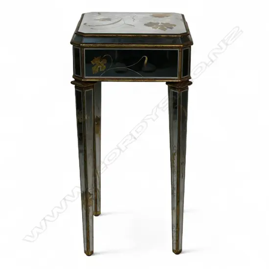 gilded detail to body and with gilded leaves on the mirrors. 830 x 400 x 400mm. Provenance: From the home of a retired Auckland commercial architect.