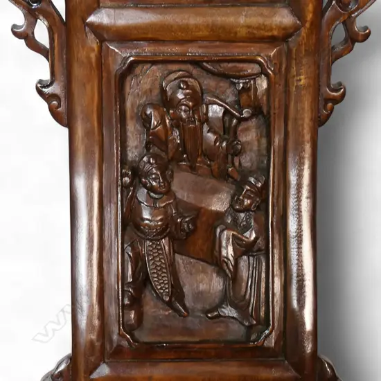 c.1900/1925, from Zhejiang Province, fine carved detail, in natural light brown timber. H.1000mm