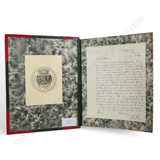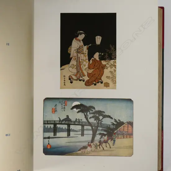 published by Yamanaka & Co., London. First edition, 27/175. '...an Illustrated Record of the Loan Exhibition Held in Aid of the British Red Cross in October-November 1915'. pp.213, 8 colour and 162 black and white plates. Quarter bound in red leather and green cloth. Attached letter written by Henry L. Joly to Mr Tomkinson on matters of personal health pasted to front end paper. Preface with sticker 'Presented to the Wigan Free Society Public Library' above library stamp. Endpaper label 'Ex. Libris I Heriot'.