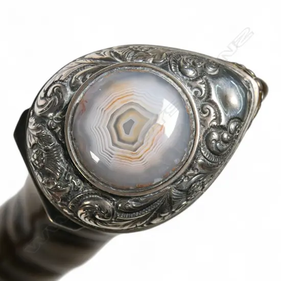 An exceptional Victorian Scottish silver and agate mounted very large snuff mull,