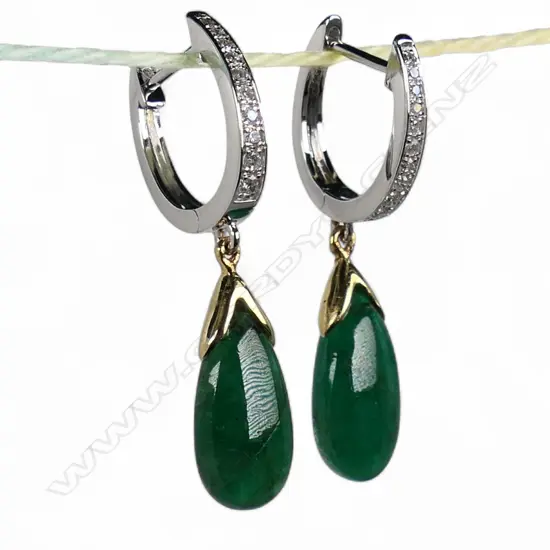 A pair of 18ct white gold emerald and diamond earrings,