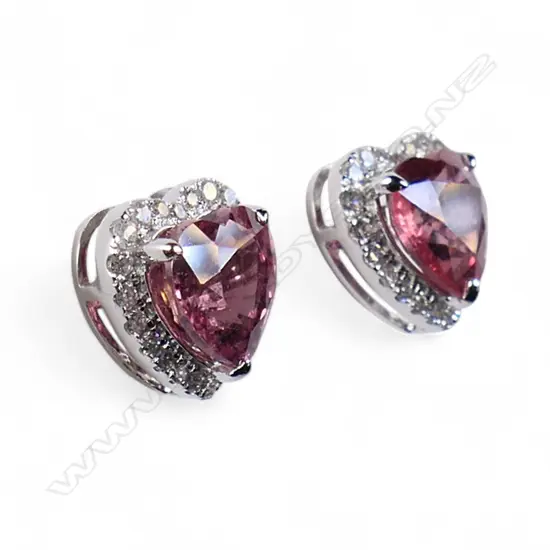 A pair of 18ct white gold and pink tourmaline and diamond earrings,