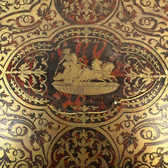 with extensive ormolu decoration, the drawer with ormolu head detail, the legs with ormolu female torsos, sabot feet. Requires some attention. 1150 x 700 x 780mm.
