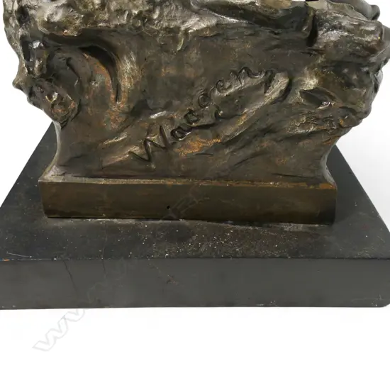 after the original by Arthur Waagen (German 1833-1898), depicting a shipwrecked sailor. Entitled to the front, "Waagen' to the reverse. Raised on ebonised base. H.895mm. Note: This is a partner work to the previous lot. Provenance: Ex. Kerikeri estate. Large home of a diplomat.
