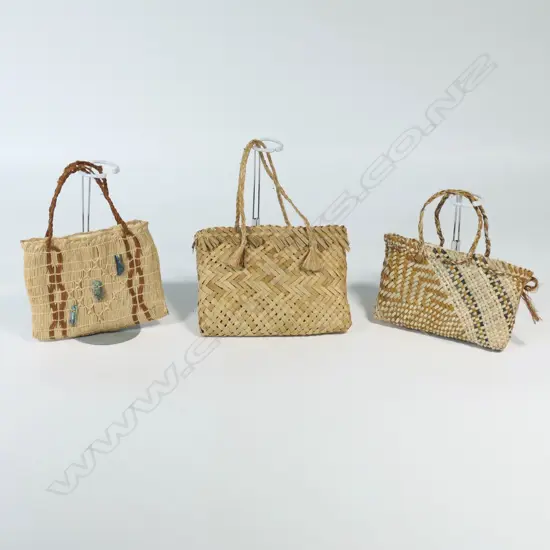 Dr Te Aue Davis (Ngati Maniapoto Ngati Uekaha 1925-2010) woven set of 'The three Baskets of Knowledge',