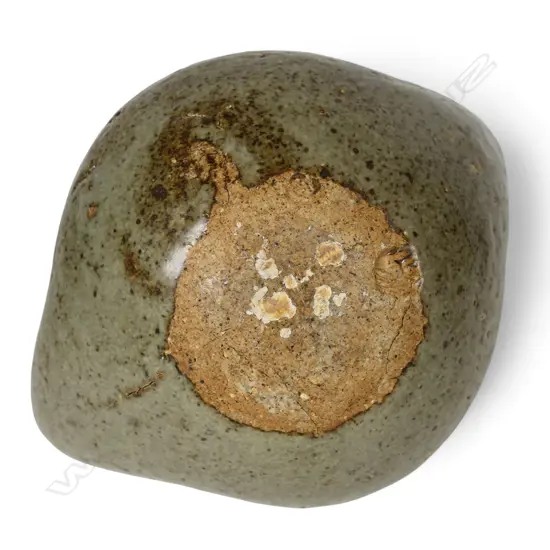 stylised winged ovoid form. Glazed in shades of brown and ash. Designed in the mid-1950s, Castle created this form occasionally throughout his career. With both maker's mark to base. H.135mm. W.185mm. D.145mm. Some firing crack marks.