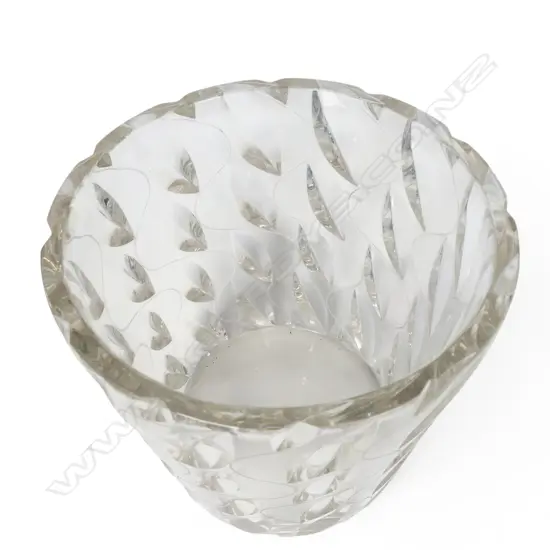 leaf pattern repeating to body, open tapered beaker type form, engraved signature to base. H.188mm.