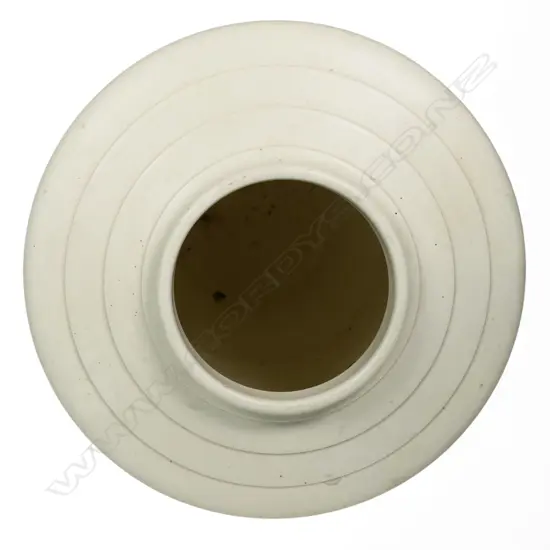 matt white glazed, tapering conical shape with five lathe turned bands to the sides, the top with sloping shoulders. Printed circular factory mark to base. H.288mm.