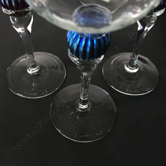 A set of four Garry Nash mouth blown glass drinking goblets,