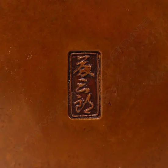 of three tapered bulbous sections. Dragons beneath the drip-trays. The foo lion mask feet with scrolling legs to the circular platforms. Cast character marks to base. H.250mm.