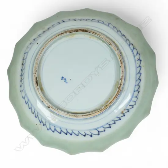 striking painted fish (John Dory) pattern, with celadon glazed scalloped rim. 260 x 260mm