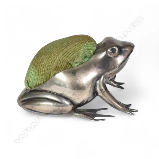 A rare Edwardian silver frog pin cushion,