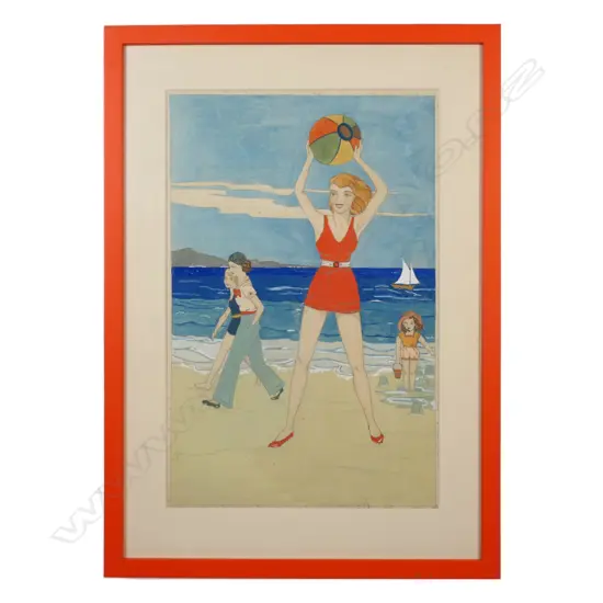 Heather Masters (NZ 1917-2012) Women and Beachball,