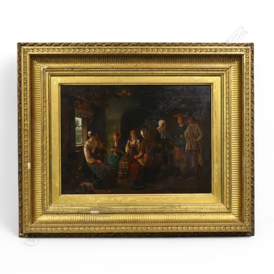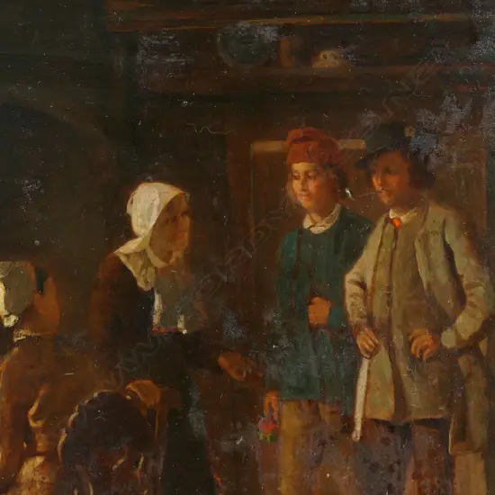 Sven Victor Helander (Sweden 1839-1901) 'Interior Scene with Women Spinning',