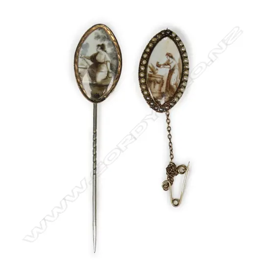 Two early 19thC hand painted on ivory mourning items,