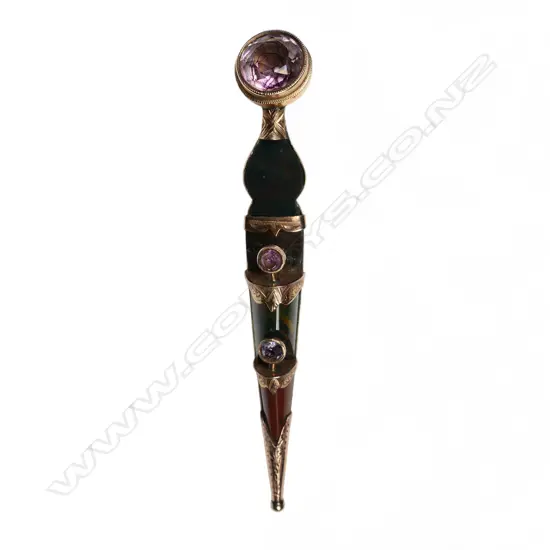 A c.1900 9ct gold and various stone set Scottish dirk brooch,