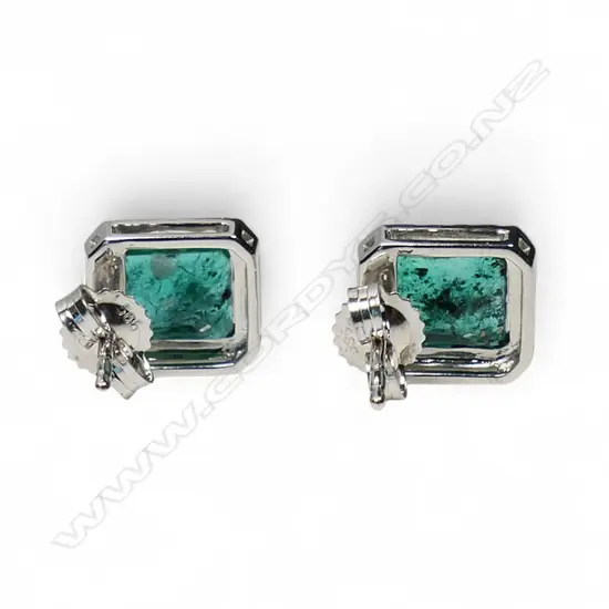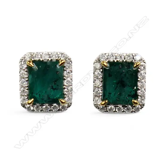 A pair of 14ct white gold emerald and diamond earrings,