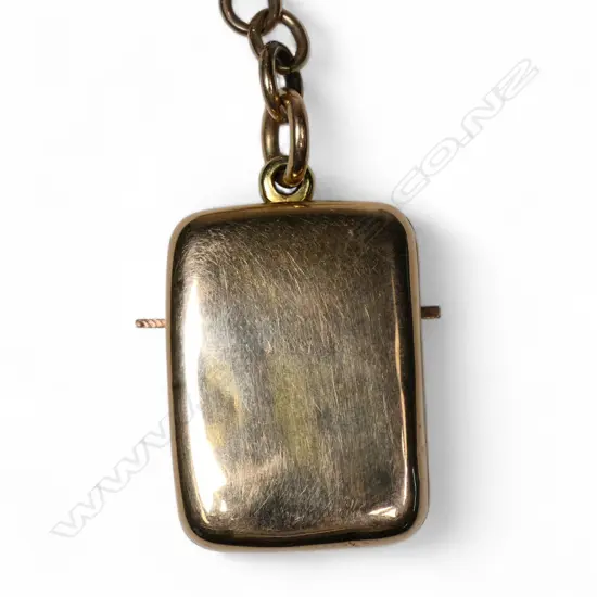 the hinged locket with enamelled and pearl set pool table top. The chain of Prince of Wales and rail links with T-bar & 1 clip. 37.5gms