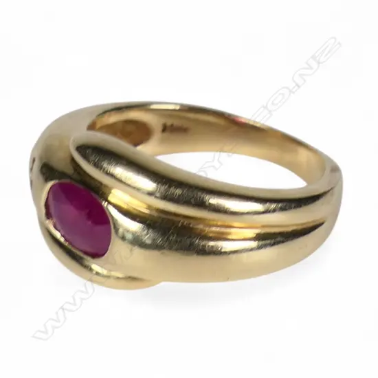 the stylised snake set with an oval facet cut ruby and a small diamond. 5.6gms.