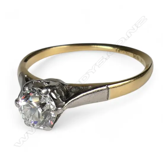 a 0.69ct old European cut diamond (Colour G-H, Clarity SI2), claw set in platinum Matthey mount. (diamond has a chipped girdle).