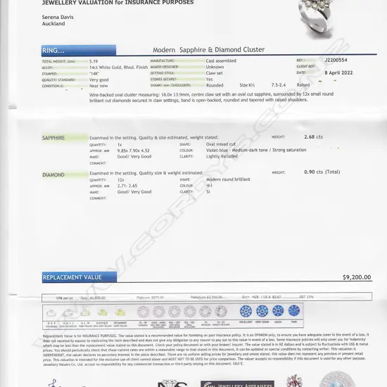 the 2.68ct oval mixed cut violet-blue sapphire claw set (lightly included) and surrounded by twelve modern brilliant cut diamonds (Colour H-I, Clarity SI). TDW. 0.90ct. Valuation available.