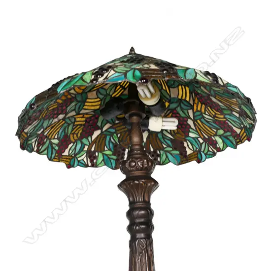 A late 20thC Tiffany style leadlight stained glass table lamp,