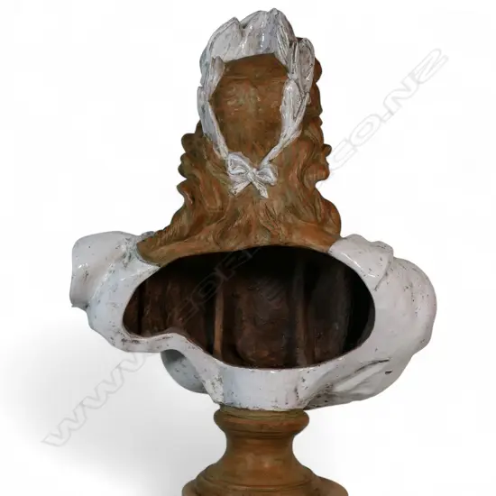 glazed wreath to her hair and glazed shawl, on terracotta Greek column. H.1740mm.