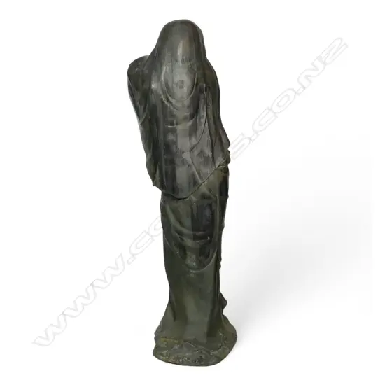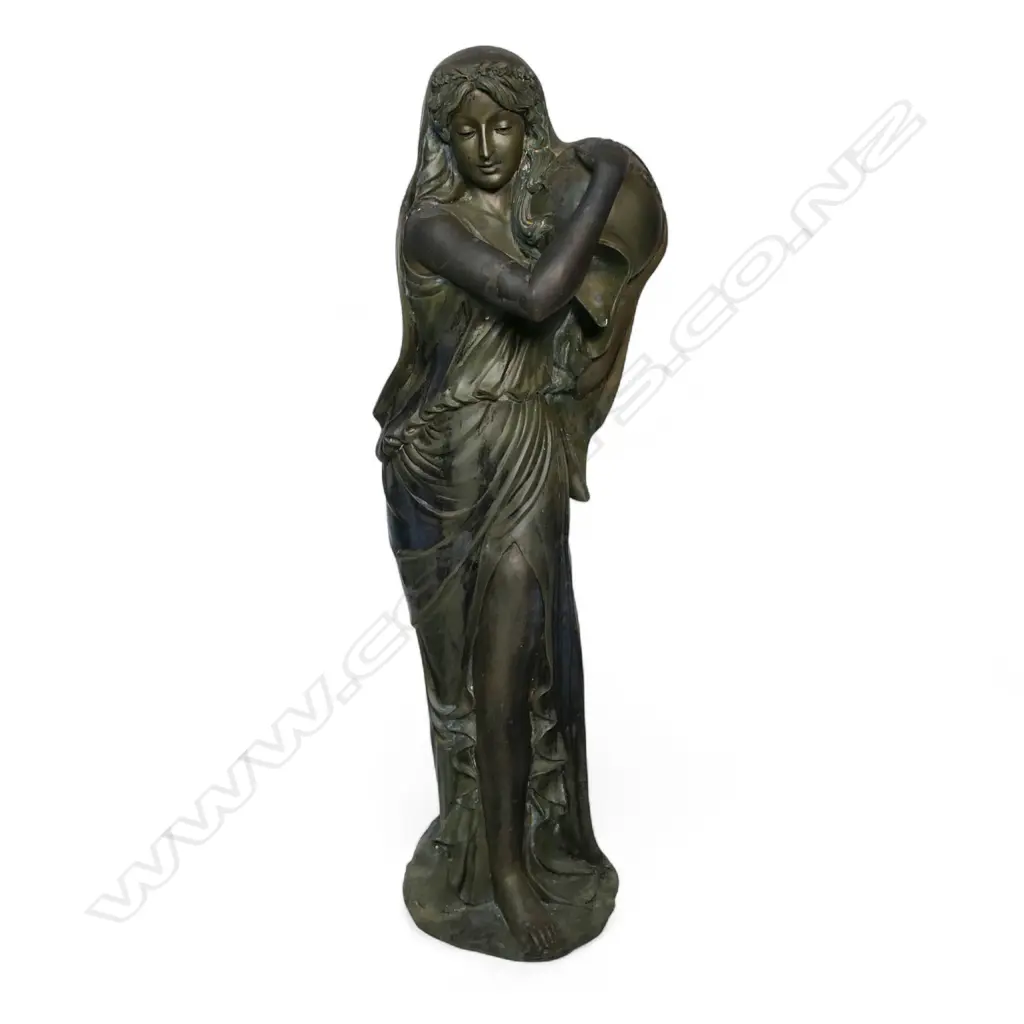 she stands holding an inverted amphora wearing a sleeveless long dress draped to the ground, her long head scarf falling down her back. H.1620mm.
