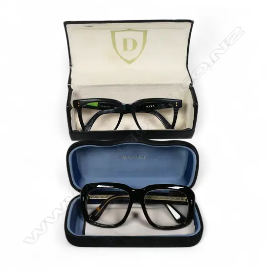 Gucci, c.2020 and Japanese 'Sequoia', c.2015. With prescription lenses and in original cases.