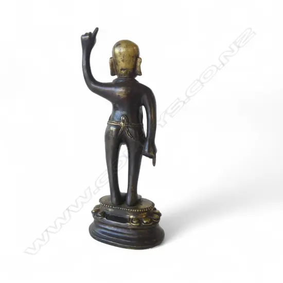 standing with left hand raised, index fingers pointing. On stepped plinth base with lobed band. Gilt highlights. H.22cm