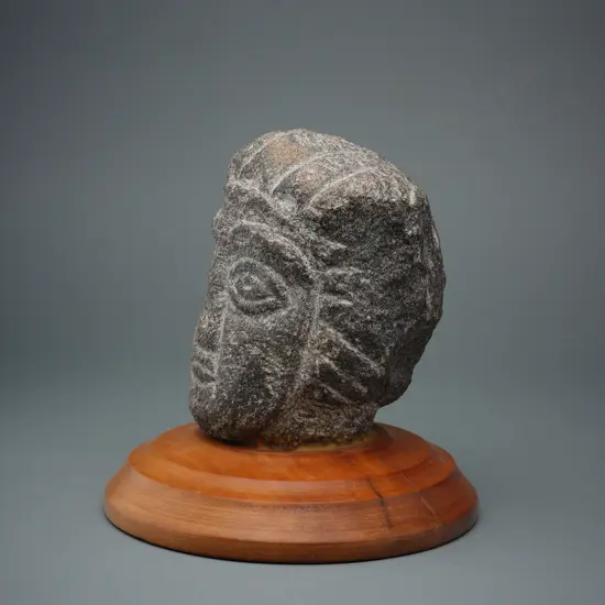 mounted on wood stand. H.15.5cm Cat. Note/Ref.: Bought in Putaruru about 12 years ago. RDB believed it to be ancient Near Eastern. APM pers com 30/9/23