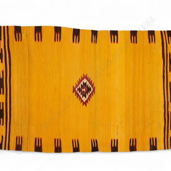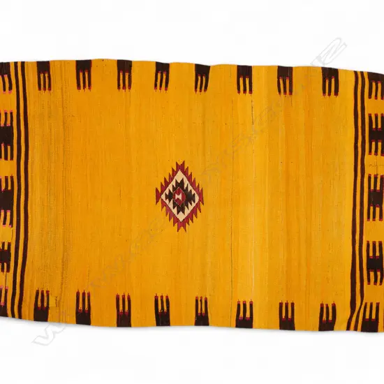flatweave, yellow ochre ground. 183 x 109.5cm