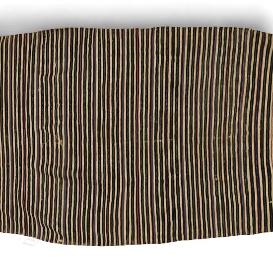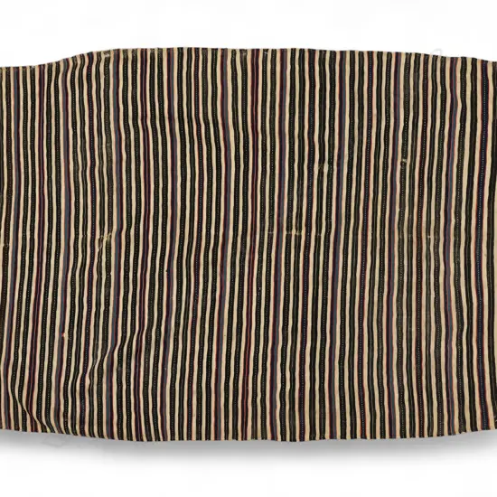 thin flatweave, horizontal stripes, white/red/blues. 162 x 120cm
