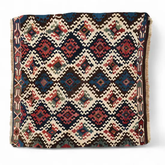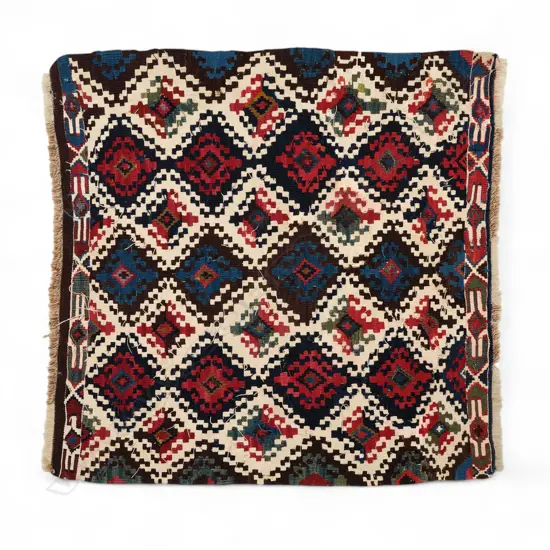 hooked lozenge lattice repeat, plain tassels. 85 x 82cm