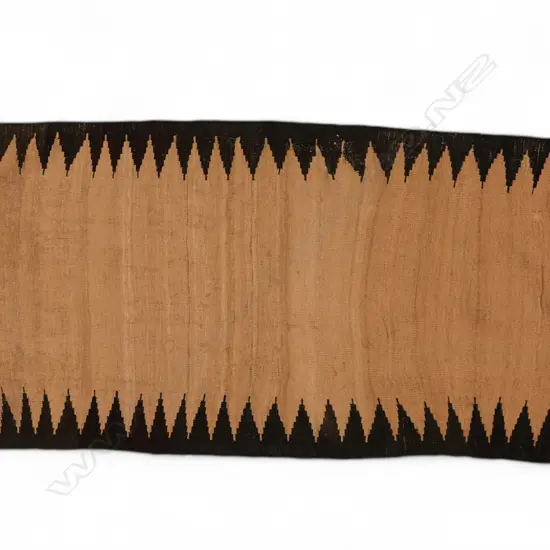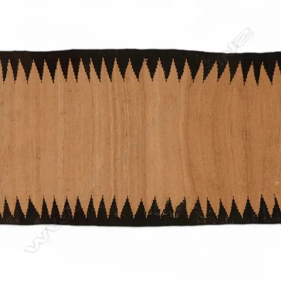 wool. The long centre panel in shades of light brown with a black pointed border, each end decorated with bands of intricate geometric designs in colours of red, blue, yellow, green and ivory with braided tassels. 292 x 77.5cm. Acquisition/Prov.: John Cordy Limited, Oct 2013 Sale V010, lot 514.