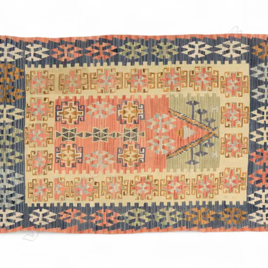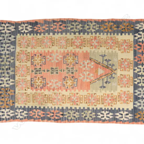 indigo madder, border and mihrab, four hooked diamond medallions. 176.5 x 116cm