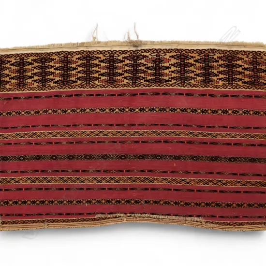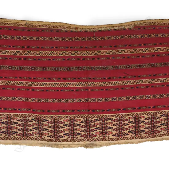 flatweave pile, madder field with pile bands and lower part. 126 x 83cm.