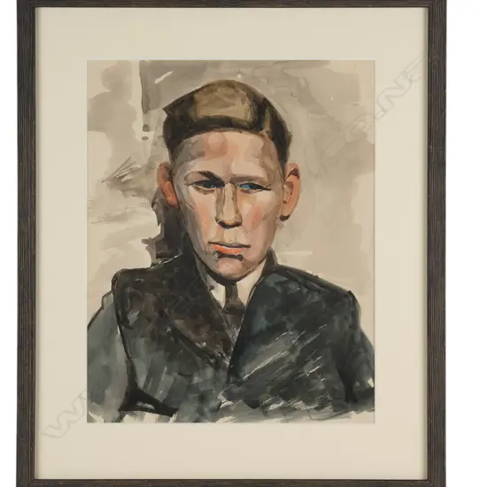 Cat. Note/Ref.: At the time of acquisition, the vendor suggested the portrait might be of the artist's brother. It is unclear when the Breslau-born Paula Fischer (1873-1950) left Germany for England or if she was accompanied by members her family. The painting may have been made prior to her departure as a refugee from the Nazi regime. Title: Untitled portrait of a man (possibly the artist's brother) Medium: watercolour on paper, framed Origin/Date: England, c.1935 Acquisition/Prov.: Newton Andrews Gallery, c.2013 38 x 30cm
