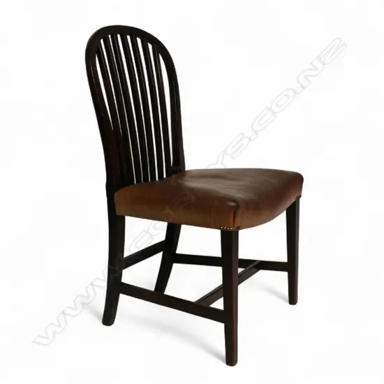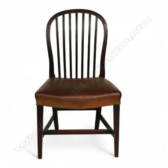 hoop back and reeded splats with brown leather upholstered seat. Purchased Murdoch McLennan Antiques.