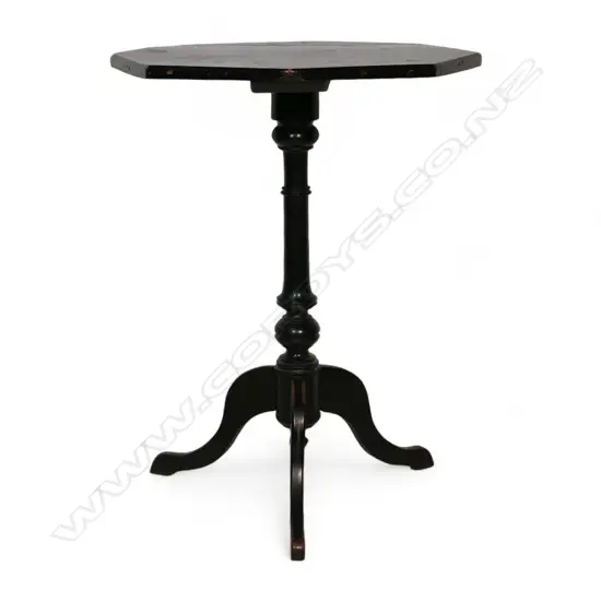A New Zealand c.1870 ebonized kauri tripod table,